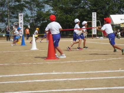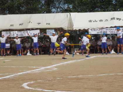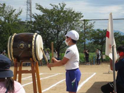 太鼓のリズムにのって、気持ちを一つにして走っています。