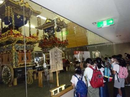 曳山展示館での様子です。曳山展示館では、カイコにまつわる展示もありました。