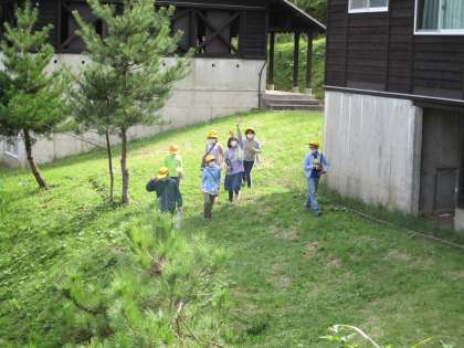 子どもの村の敷地内を楽しく歩き回って、ポストを探しています。