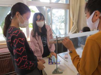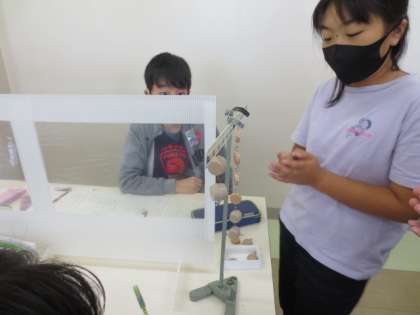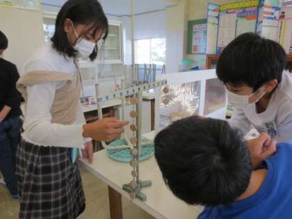 6年生の理科の授業風景です。グループ活動では、ボードを使って間をとっています。