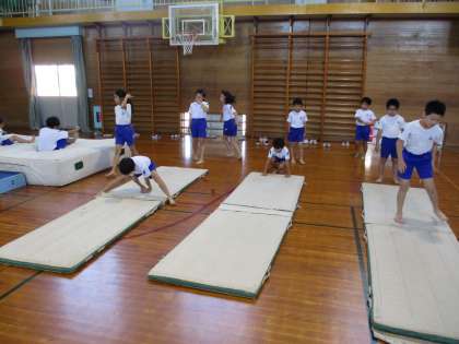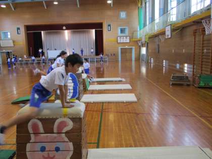 写真は跳び箱、マットの練習の様子です。