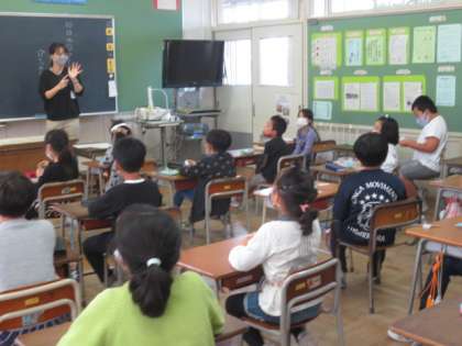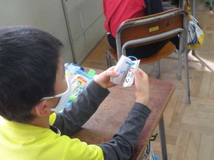 2年生は、かけ算の授業が始まりました。5の段を何回も練習しています。