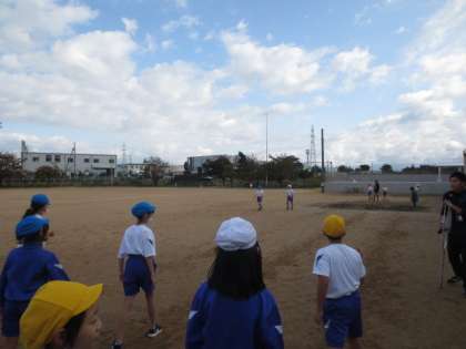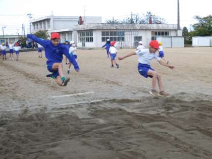 4年生は、走り幅跳びをしました。ステップのリズムを確認しながら練習しました。