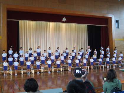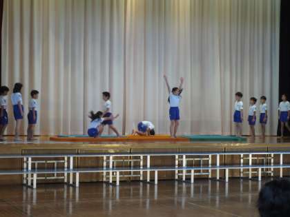 3年生の発表です。体育の時間に学習したマット、跳び箱、縄跳び、ダンスの発表をしました。最後に心をこめて合唱しました。保護者の皆様から大きな拍手をいただきました。