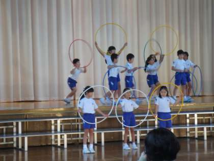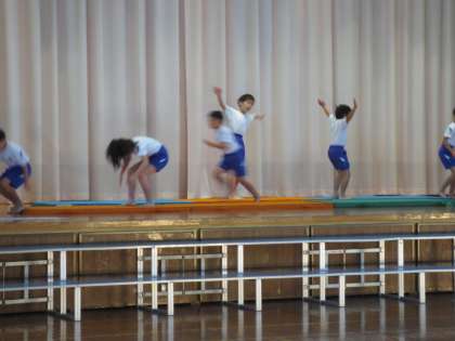 跳び箱、マット、フラフープ、縄跳びの4つのグループに分かれて、約1ヶ月前から練習を積み重ねてきました。