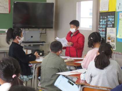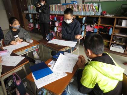 全体会の後、各学級でふり返りの授業を行いました。5年1組では、不安になっても差別はいけないことなど、グループで話し合い、全体で意見を交換しました。