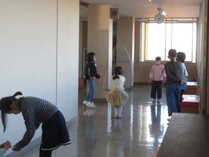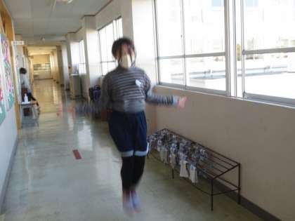 今日は、晴れてとても暖かい日になりました。子供たちは、のびのびタイム(昼清掃がない長い休み時間)を楽しく過ごしました。密にならないように、グラウンドや体育館は順番に使うことになっています。図書室で本を読んだり、校舎内で縄跳びをしたりして上手に遊びました。
