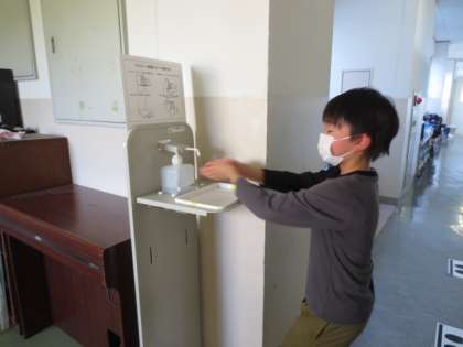 のびのびタイムの後、子供たちは、進んで手洗いや手指の除菌をしています。ポケットにハンカチを入れておく習慣も身に付いてきました。