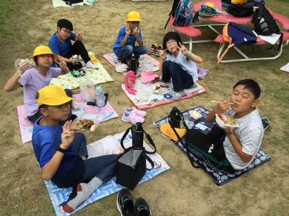 お弁当タイムの様子です。お家の人につくっていただいたお弁当をおいしそうに食べていました。