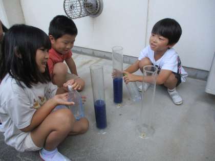 水のかさをくらべるためにどうすればよいかをみんなで考え、実際に実験をして確かめました。