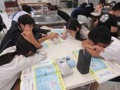 理科では、「もののとけ方」の学習をしています。水に食塩をとかすとどうなっていくのかを観察しました。とかした食塩はどこにいったのかを予想したり、考えを発表したりしました。