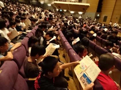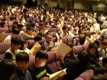 劇団四季のミュージカル「二人のロッテ」を見に行きました。みんな、劇団員の人のせりふや歌やダンスを夢中で見ていました。