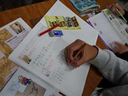 教科書や資料集、グーグルを使ってがんばって調べています。