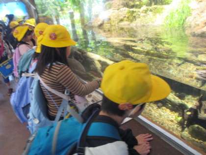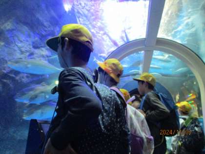 今日は、魚津水族館へ校外学習に行きました。きまりをまもって行動する大切さに気づいたり、生き物をよく観察したりして過ごしました。ご家庭でも、今日の思い出をぜひ聞いてあげてください。