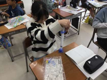 とじこめた空気と水について学習しました。空気は押すと体積が小さくなること、水は押しても体積は変わらないことなど、実験を通して学びました。