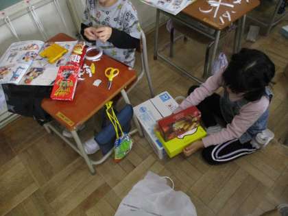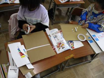 図画工作化の学習で「はこでつくったよ」を行いました。