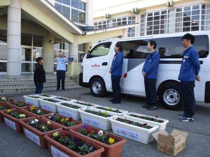 今日は村田製作所から4名の方に来校していただき、花の贈呈式を行いました。