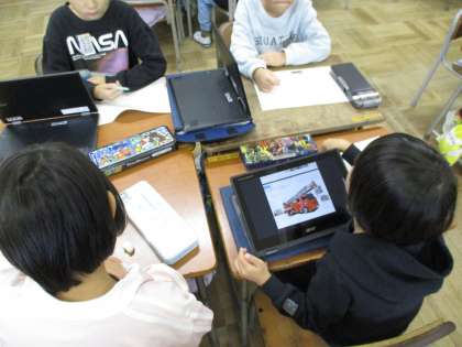国語科「じどう車くらべ」の学習では、クロムブックを活用しながら学習を進めました。