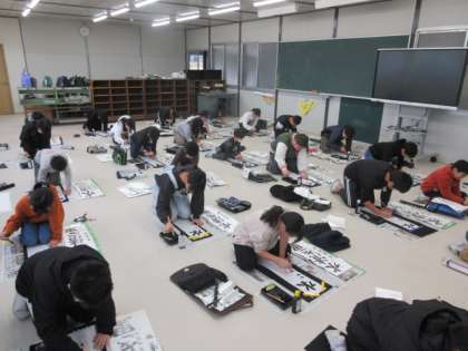 書き初め練習をしています。今年の漢字は、「水清き里」です。一文字一文字気を付けることを意識しながら、丁寧に書いていました。