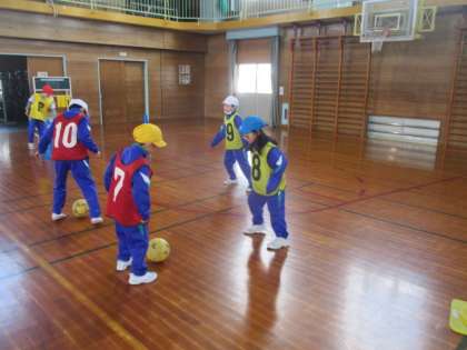 体育科では蹴る運動を中心に活動しています。サッカーボールを使い、友達とパスやシュートの練習をしました。子供たちは、足だけを使ってボールをコントロールする難しさを感じながらも、チームの仲間と楽しく取り組んでいました。