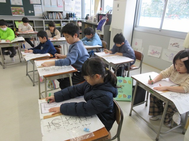 今日から3学期が始まります。新しい気持ちで、「今年も丁寧に整った字を書くぞ」と、一人一人が思いを込めて”あさ日”を書きました。ご家庭でも、練習のサポートをしていただきありがとうございました。本年もよろしくお願いいたします。