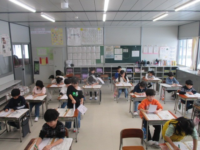 今日から3学期が始まります。新しい気持ちで、「今年も丁寧に整った字を書くぞ」と、一人一人が思いを込めて”あさ日”を書きました。ご家庭でも、練習のサポートをしていただきありがとうございました。本年もよろしくお願いいたします。