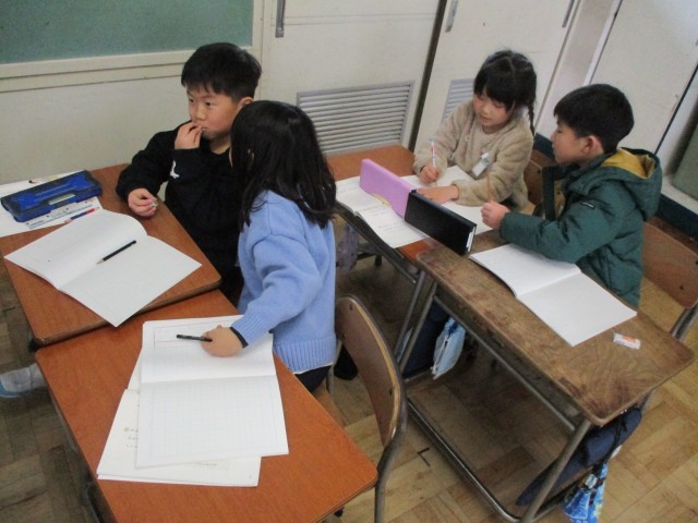 物の特徴を捉えながら、どのようなヒントを出せば楽しくクイズ大会をすることができるか、一生懸命ペアやグループの友達と考えています。