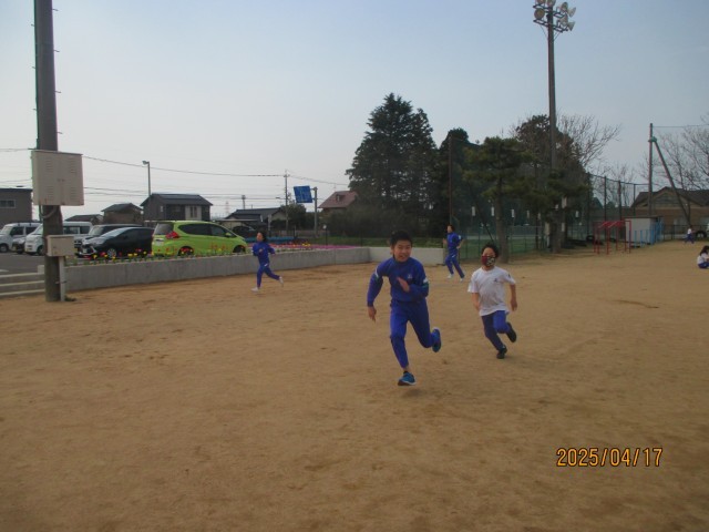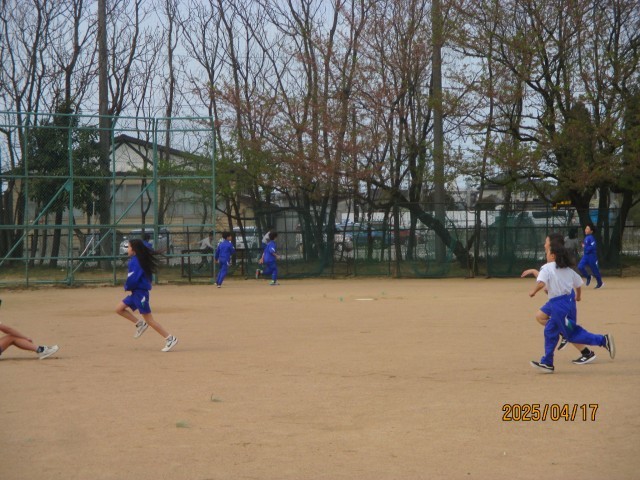 50m走の練習で、いろいろな姿勢からダッシュをしたり、鬼ごっこをしたりして楽しく活動しています。昨年度よりも50m走のタイムが縮んだ人がほとんどでした。運動会へ向けてたくさん練習を重ねていきます。