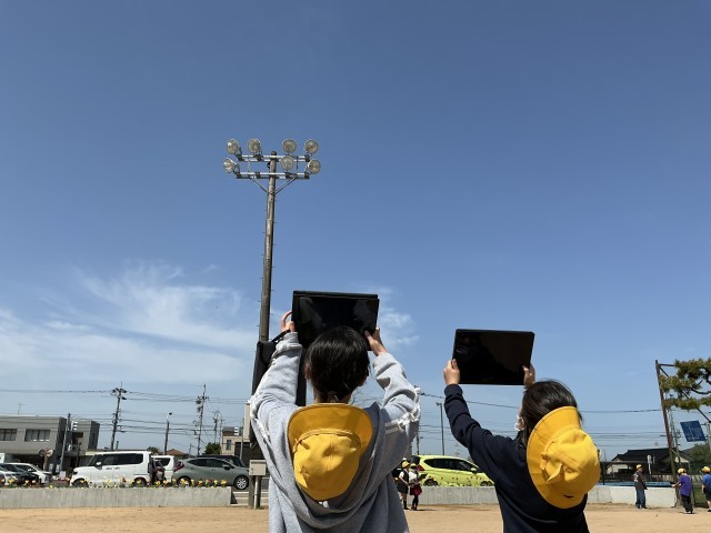 時間によって雲の形・色・量が変わることを知る中で、天気の変化には雲が大きく関係していることに気付く子供たちでした。