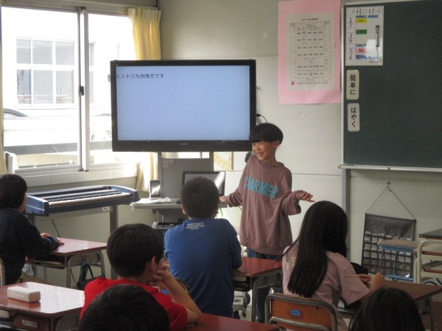 社会科では、興味をもった都道府県について調べてクイズ大会を行いました。様々なクイズに子供達は大盛り上がりでした。