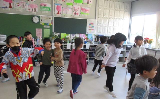 音楽科では、世界のおどりの音楽について学習しました。いろいろな楽器や道具が使われていることや、リズムの特徴について気付いたことを話合いました。最後には、音楽に合わせてそれぞれの国のダンスをおどって楽しみました。