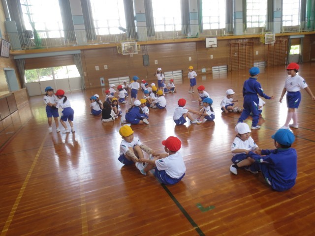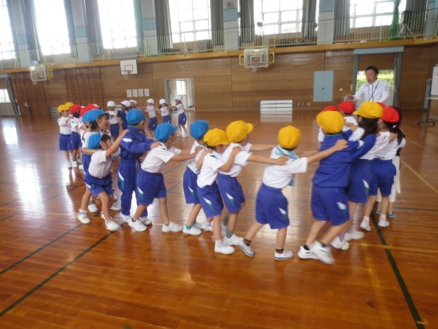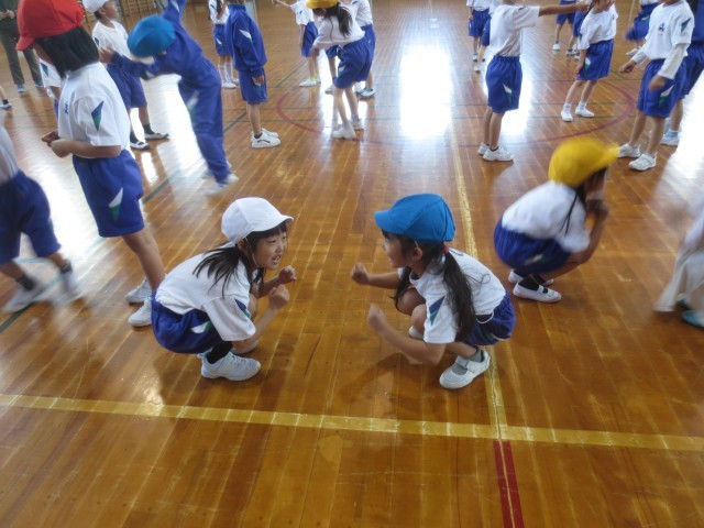 体育の授業では、体つくり運動として「からだじゃんけん」や「じゃんけん列車」を行いました。1年生全員で楽しく活動しました。