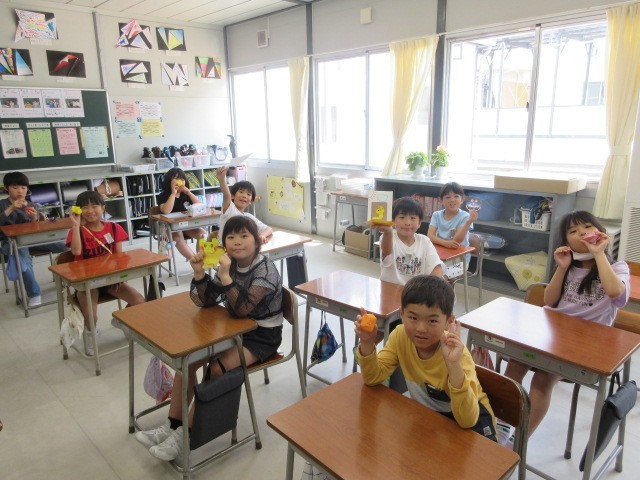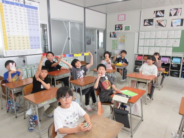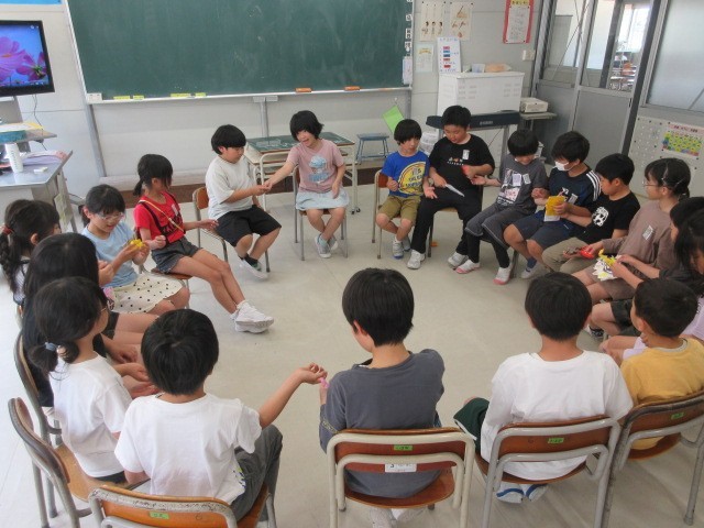 おわらいクイズ係によるプレゼント交換を行いました。クラスのみんなが楽しむための企画を自分たちで進めています。