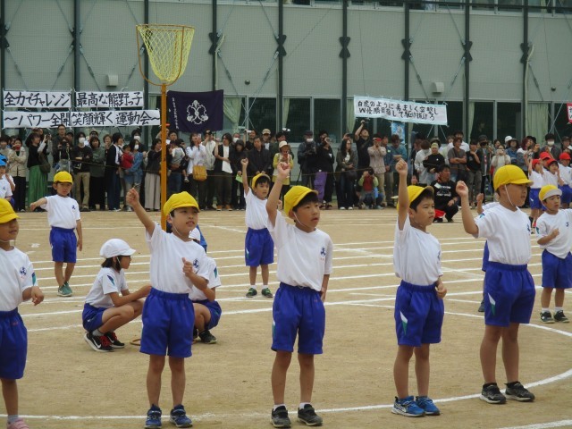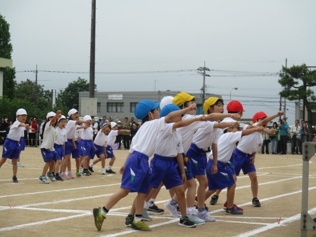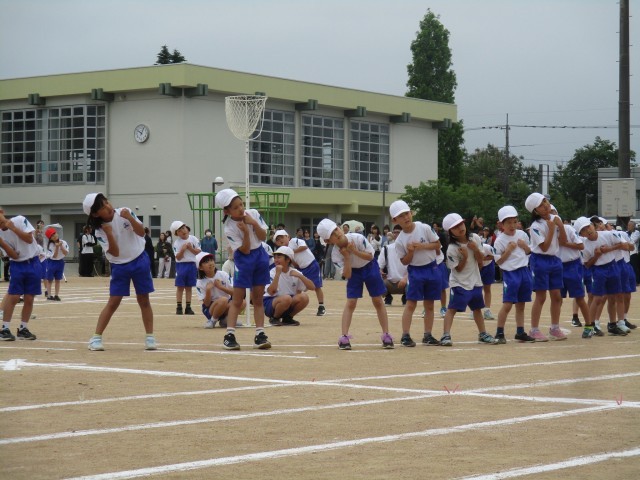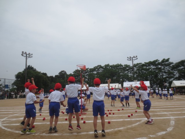 運動会では、低学年の団体競技で玉入れを行いました。競技の前には元気いっぱいにダンスを披露しました。2年生が中心となって、協力して、整列したり、競技をしたりすることができました。
