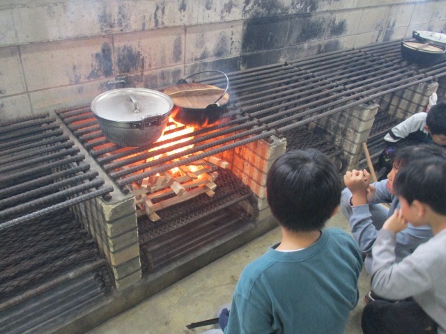 宿泊学習の野外炊飯の様子です。
