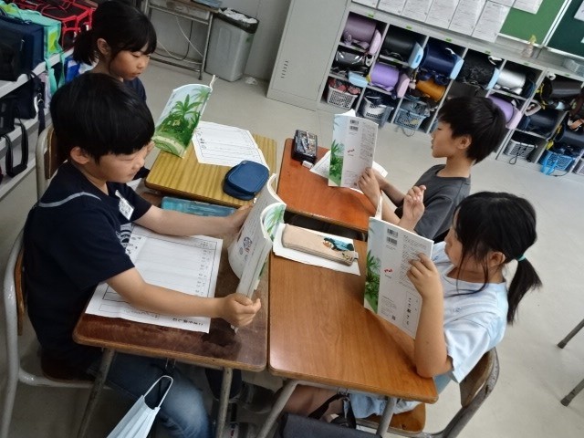 国語科では、「こまを楽しむ」という説明文の学習に取り組んでいます。グループで音読をした後は、各段落に書いてある筆者の伝えたいことを読み取りました。