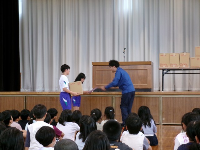 富山村田製作所の社員会様から、育友会活動に使用済みインクカートリッジを、学校の花壇に花苗を寄贈していただきました。