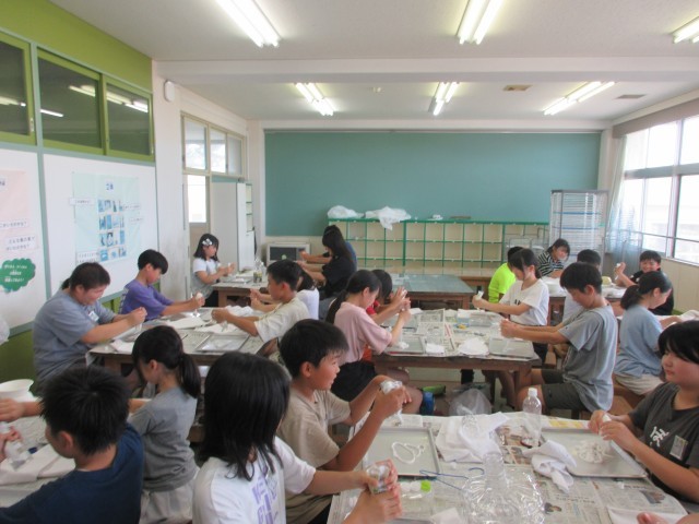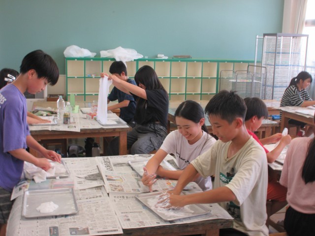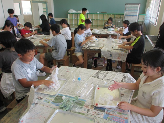 図画工作科の学習では、「固まった形から」の学習をしています。布に液体ねん土をつけて、形を考えることができました。これから固まった形のものに色を塗っていいく予定です。