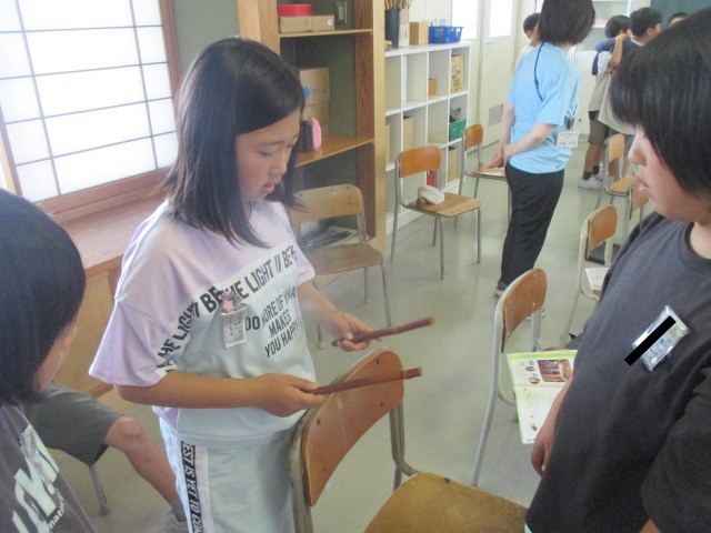 音楽の学習では、こきりこやびんざさら等の楽器に触れ、演奏したり声を合わせて歌ったりしています。