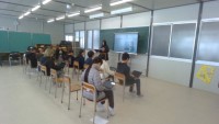 家庭科では、ミシン等を使い、ナップサックやトートバッグを作っています。ミシンの使...