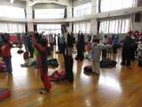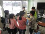 引き続き、班ごとにスキー学習の開講式・閉講式の練習をしている写真です。子供たち...