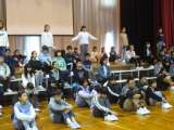 第1部と第2部に分けて学校コンサートを行いました。毎日給食の時間に流れる曲や本...