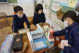 算数科「かたちあそび」では、身の回りの空き箱や空き容器を使って、立体図形に親し...