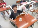 町探検が一段落し、これからは身近な材料を用いておもちゃを作ります。「転がったよ...