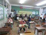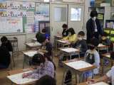 書初め練習が始まりました。 初めての書初めは、なかなか難しいようです。 教頭先生...