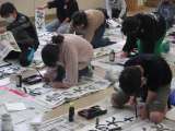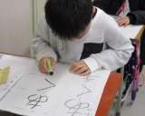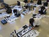 書き初め大会に向けて、「明るい心」という字を練習しています。お手本をよく見て、...