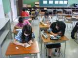 写真は、展示物を見学している様子です。資料館の方の解説を真剣に聞き入っていまし...