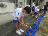 6年生では、図画工作科で「くるくるクランク」の学習を行っています。画像は、学習...