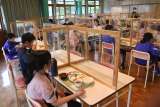 感染症対策がしっかり取られた食堂で、給食の時と同じように静かにいただきました。