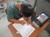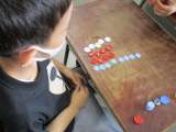つかまえた生き物を観察しています。 食べ物を考えたり、入れ物の中の環境を作っ...